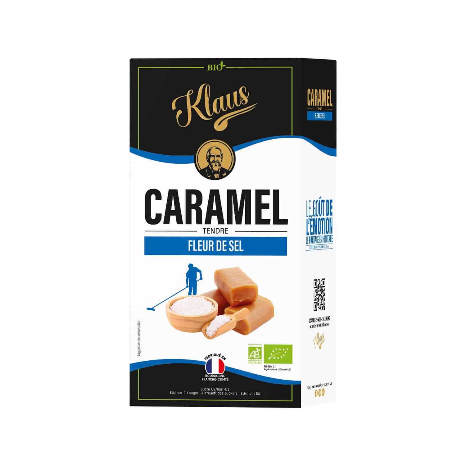 INGREDIENTS : sirop de glucose*, sucre de canne*, LAIT entier* en poudre, BEURRE* 10%, fleur de sel de Guérande 0.5%. *ingrédients issus de l’Agriculture Biologique