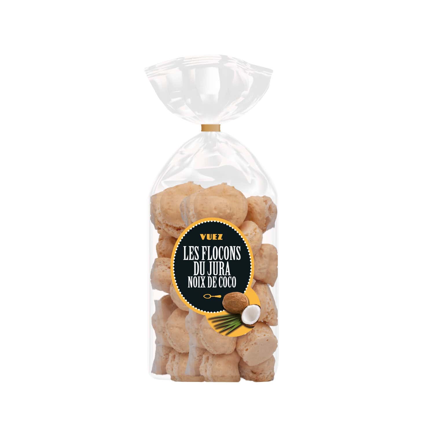 INGREDIENTS : sucre, blanc d’OEUF, noix de coco rapée 4%, arôme noix de coco 0.1%