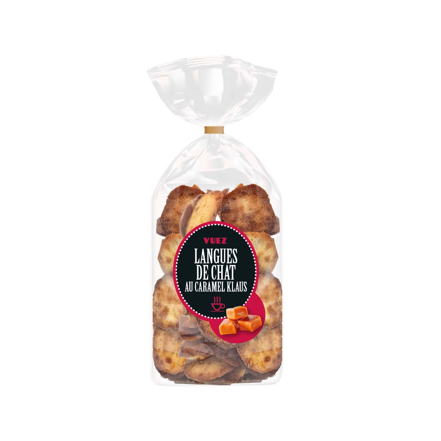 INGREDIENTS : sucre, farine de BLE, blanc d’OEUF, BEURRE, crème de caramel au sel de Salins-les-Bains 5% (CREME entière 47%, sirop de glucose, sucre, BEURRE, saumure de Salins-les-Bains 1%), brisures de caramel 4% (sirop de glucose, sucre), arôme naturel de vanille