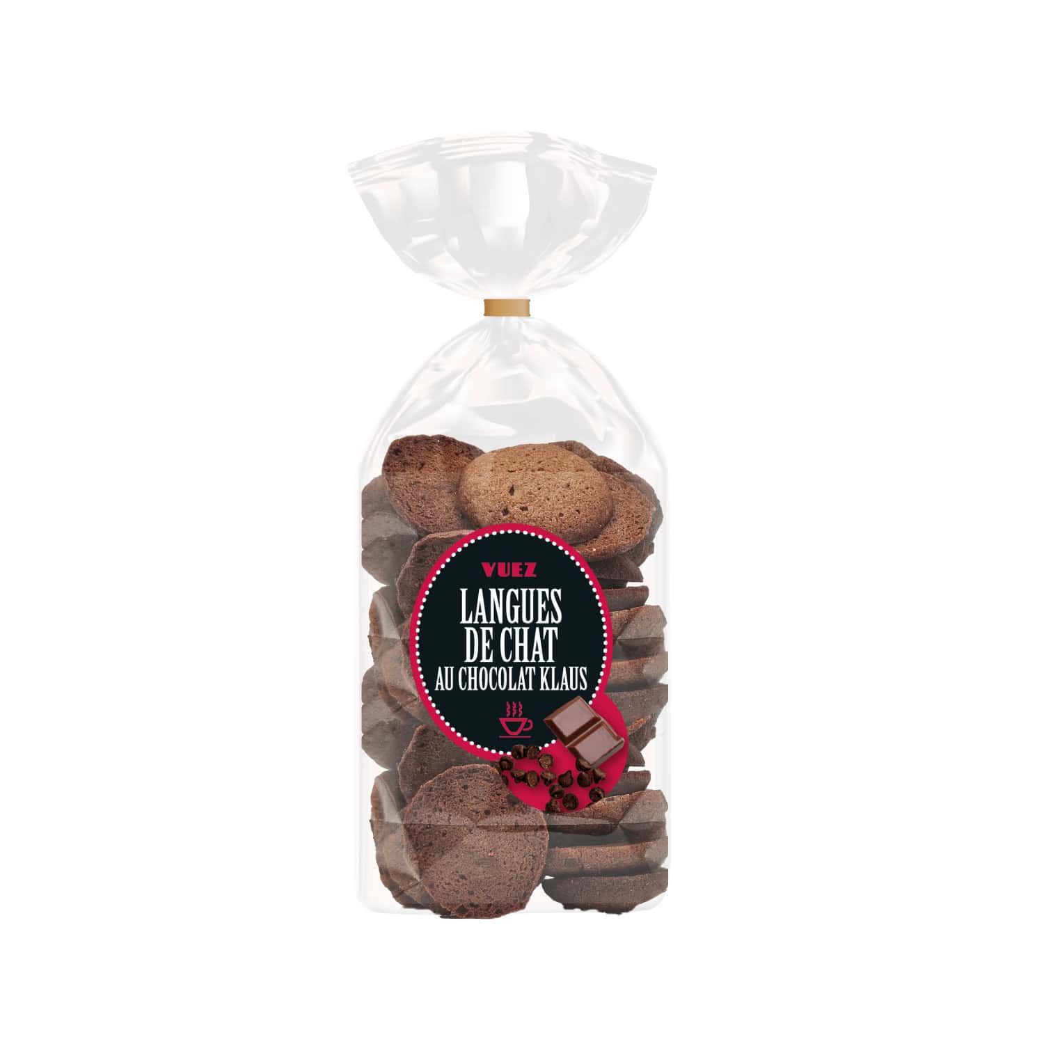 INGREDIENTS : sucre, farine de BLE, blanc d’OEUF, BEURRE, chocolat noir 4.5% (pâte de cacao, sucre, beurre de cacao, LAIT entier en poudre, matière grasse LAITIERE en poudre, émulsifiant : lécithine de SOJA), arôme naturel de vanille.