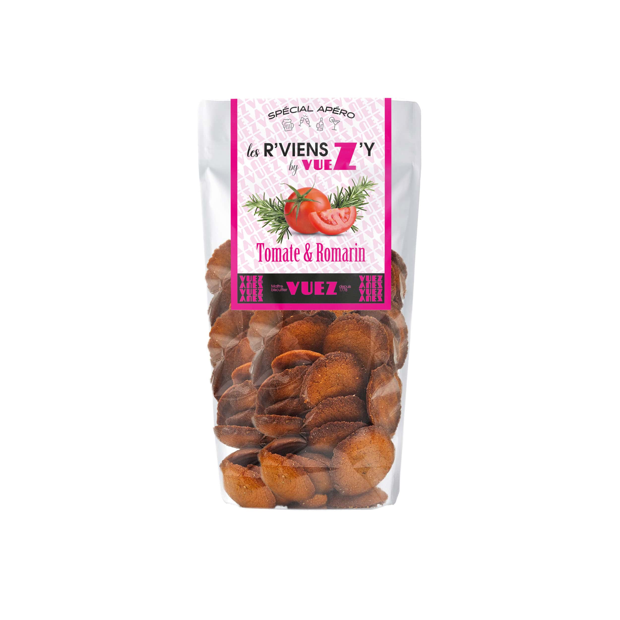 INGREDIENTS : farine de BLE, blanc d’OEUF, purée de tomates double concentrée 17%, BEURRE, huile de colza, fécule de pomme de terre, romarin 4.7%, eau, sucre, sel.