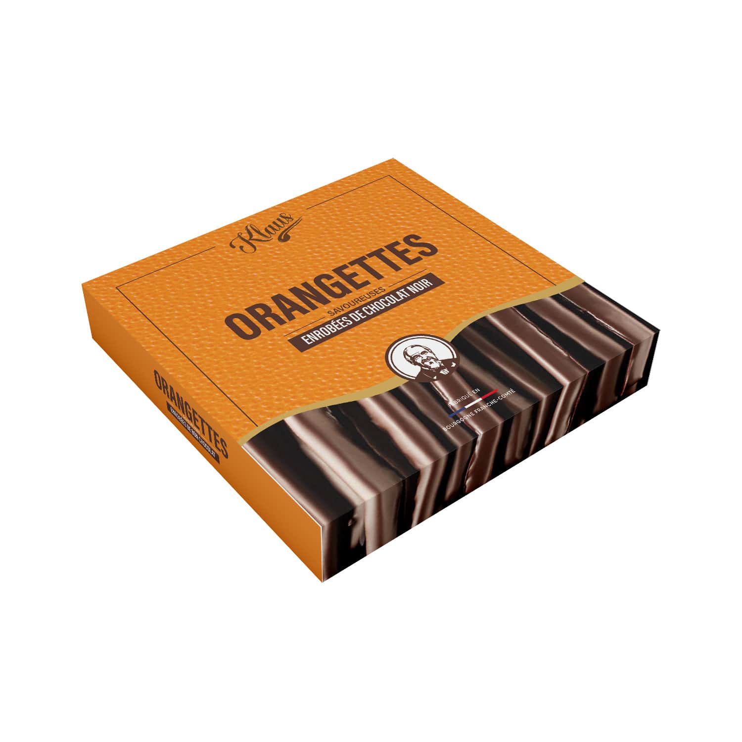 INGREDIENTS : orangettes 62% (écorces d’orange, sucre, sirop de glucose), sucre, pa^te de cacao, beurre de cacao, matière grasse LAITIERE en poudre, émulsifiant : lécithine de SOJA