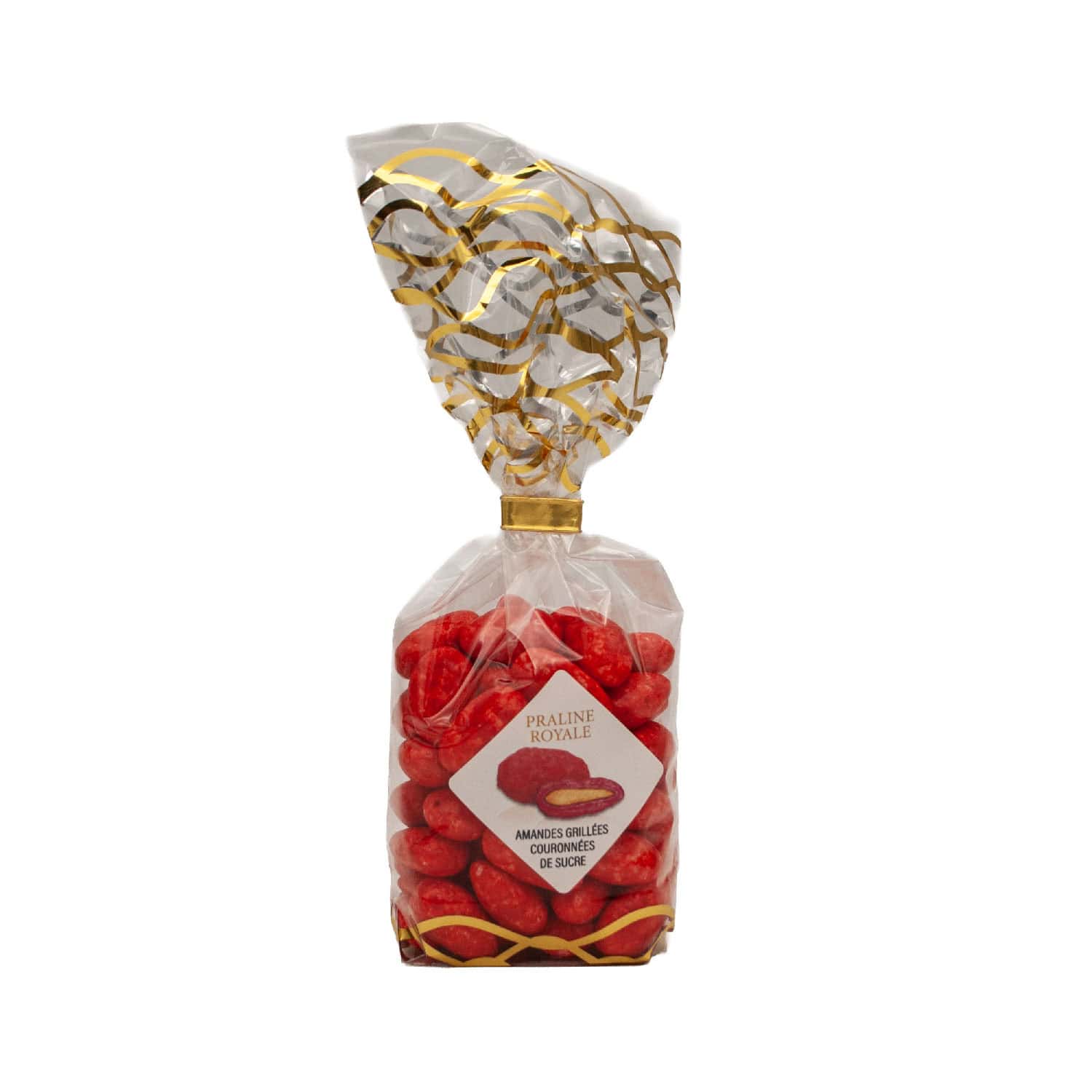 Ingrédients : sucre, AMANDES 34%, sirop de glucose, épaississant : gomme arabique, arôme naturel de vanille, autres arômes naturels, colorants : E129, E124, agents d’enrobage : cire de carnauba, cire d’abeille, gomme laque. Traces possibles de NOISETTES